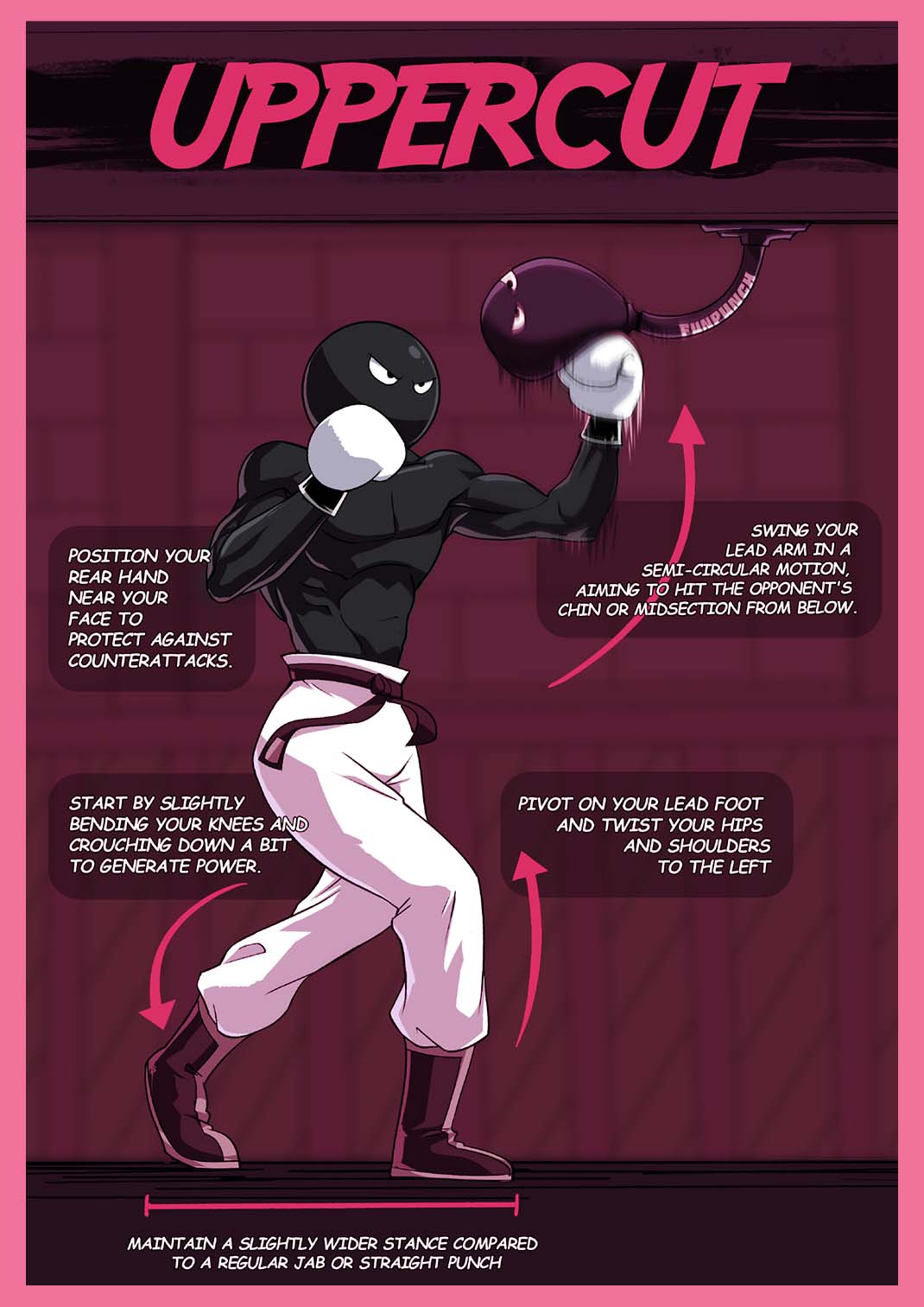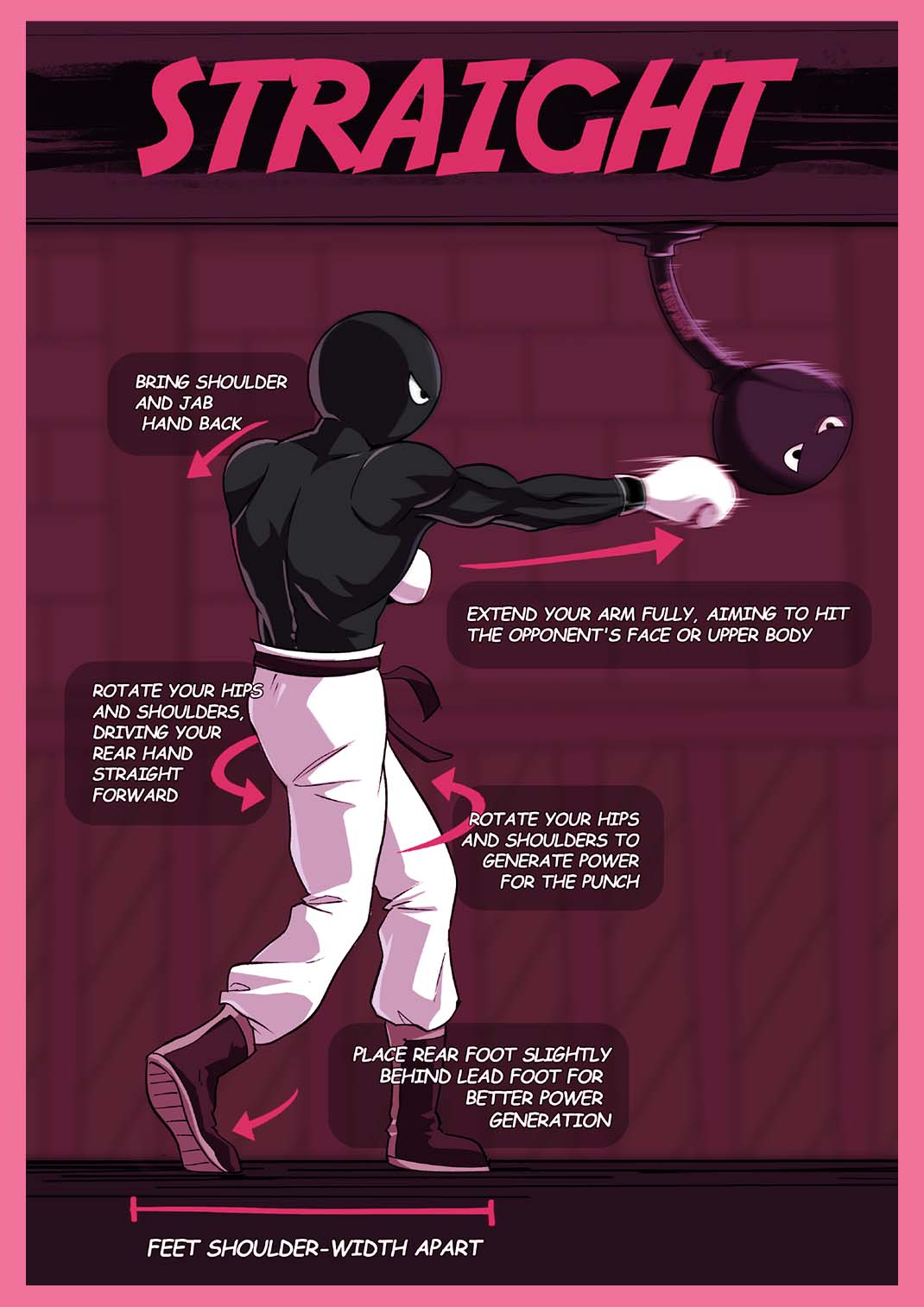 Your rear hand is your cannon. Launch it with your whole body. Twist from the hips, drive from the toes, and make sure your punch isn’t just felt — it’s remembered.